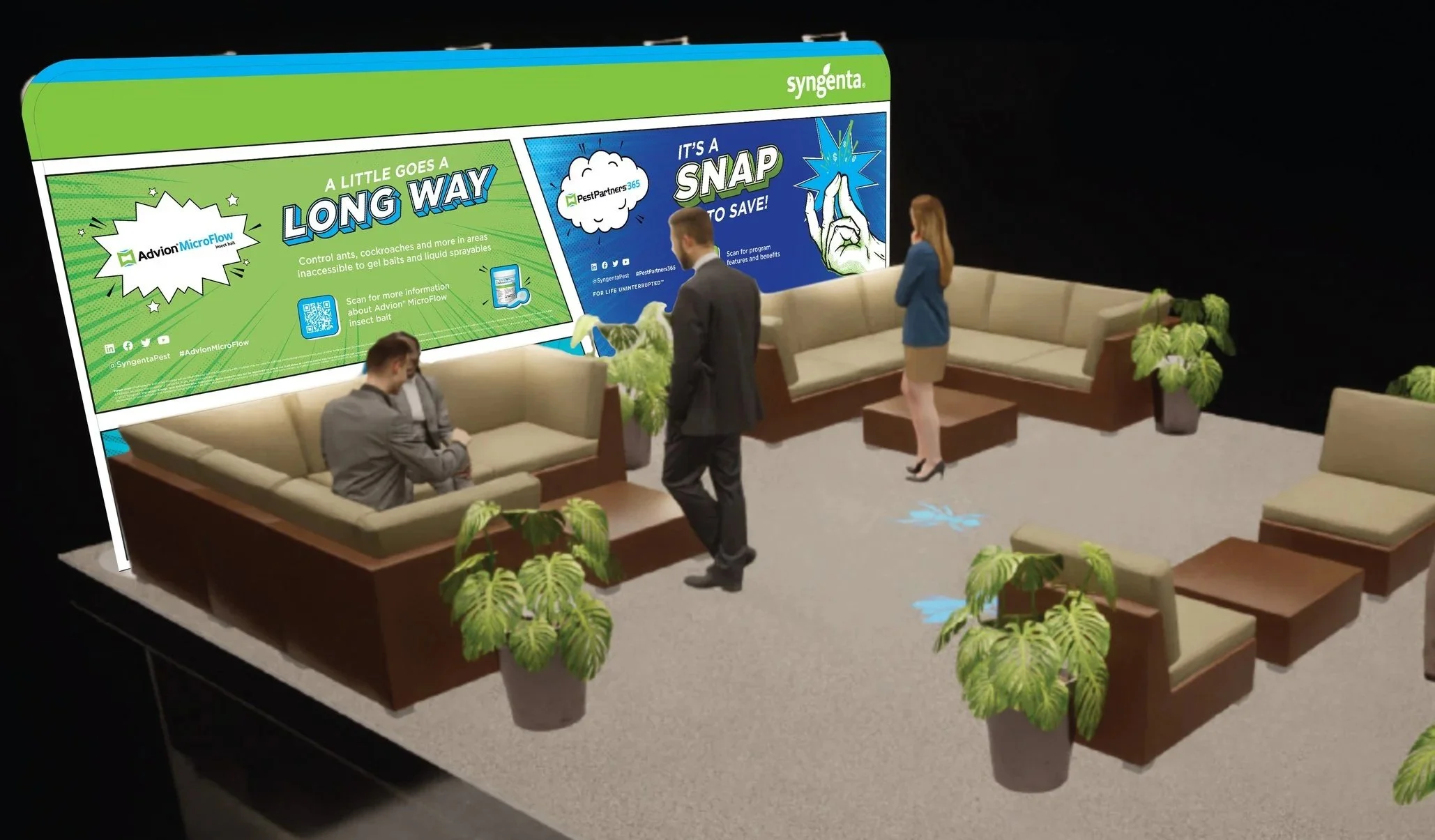 In partnership with the client, Syngenta Professional Pest Management, I designed campaign and booth materials for PestWorld, an industry-wide tradeshow where suppliers and distributors showcase their products, services, and technologies. The campaign centered on empowering Pest Management Professionals to be heroes in their field, so I created custom superhero graphics and a comic book–inspired visual identity. The result was a bold, multi-panel tradeshow booth and a dedicated PestWorld landing page that highlighted key Syngenta products and tools while bringing the campaign theme to life.